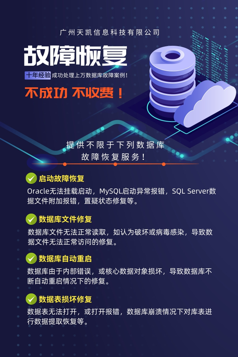 提供Oracle,MySQL,SQL Server等各种数据库故障排查处理,报错修复,如数据库无法启动恢复,数据文件损坏修复,连接报错,错误日志分析修复,BUG补丁升级漏洞修复等服务。