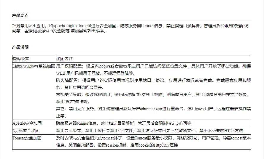 套餐版本 | 加固内容 |